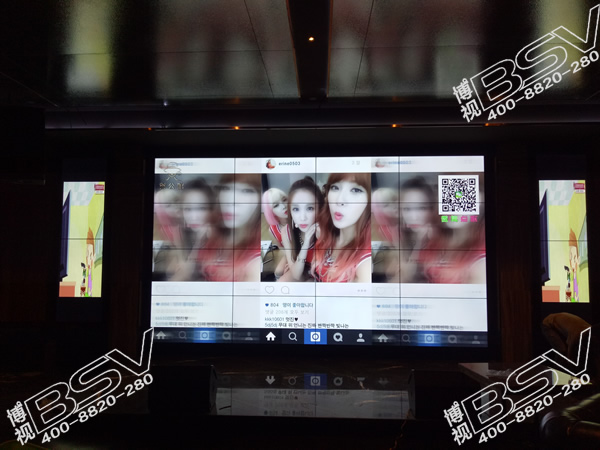 武汉拼接屏厂家,武汉博视,专业拼接屏生产、销售、服务于一体的一站式公司,是武汉仅有的拼接屏厂家。此次应武汉公馆的邀请,配合其总店形象升级,为其设计了全套拼接屏显示单元,分别为: 55寸拼接屏3.5mm拼缝,28台,55寸拼接屏 1.8mm拼缝8台,49寸拼接屏,3.5mm拼缝,9台,总共45台拼接屏,这些拼接屏即可实现分屏播放,在唱歌的同时大屏幕拼接显示系统会根据消费者唱的歌曲智能推荐,实现智能一体化应用,同时还可进行智能化的交互应用、舞蹈跃动、游戏互动,让唱歌以外的人加入其中,使之氛围充满青春活力的气息,真正提高在KTV的休闲娱乐,放松心情。