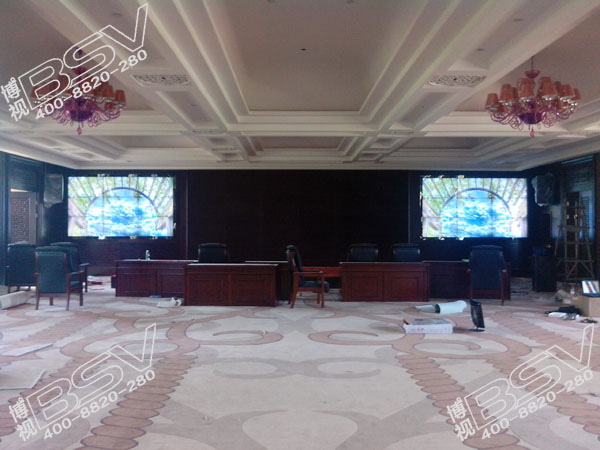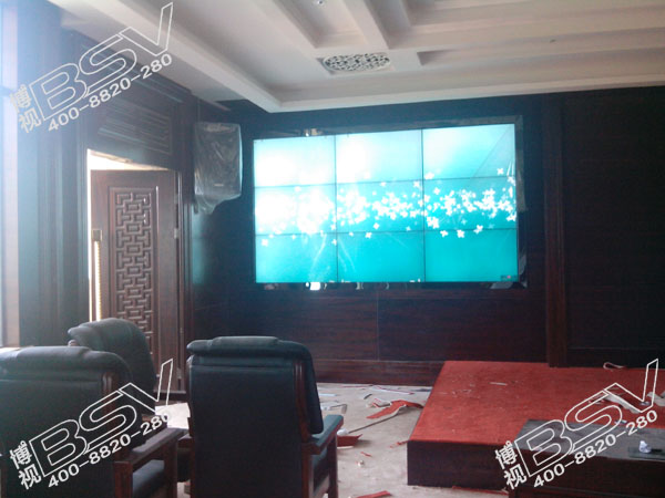 该46寸液晶拼接采用专业级挂架和先进BSV拼接技术,是目前市场上超窄拼缝。该项目用于视频会议,项目展示,与商务会议全面融合。武汉博视同创电子有限公司工程技术人员通过对大屏幕参数设置调整使得大屏幕播放效果与整个大环境相得益彰。
