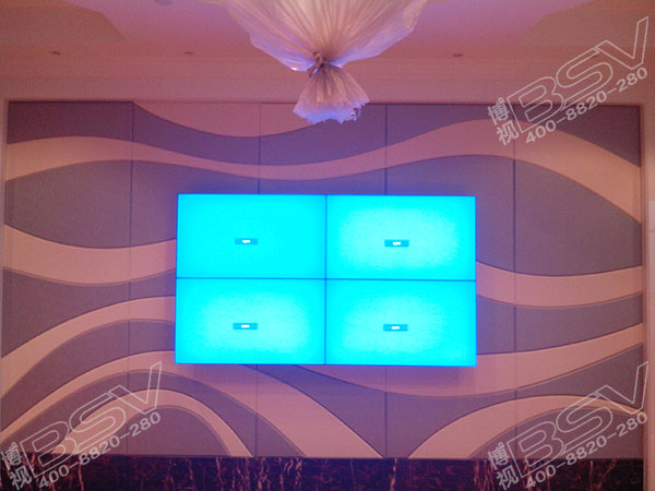 拼接方式:46寸超窄边拼接屏,采用2组2行2列拼接方案,壁挂式安装,主要用于酒店接待大厅展示、酒店主要信号以IPTV机顶盒播放为主。本次项目合作是武汉博视同创电子有限公司和武汉太子酒店多个大屏幕项目合作工程之一。