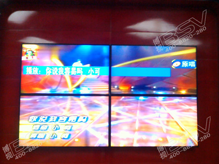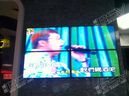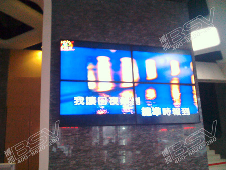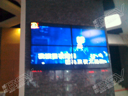 江苏徐州嘉乐迪二期是在一期基础上增加了液晶拼接屏。多处采用2X2拼接方式,挂壁安装。超窄边框,满足7X24小时不断电播放,支持高清信号,兼容性稳定性高于家庭装显示器。