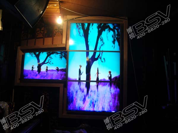 这一次为吉安钻石酒吧设计的方案是一块2*3液晶拼接墙、两块2*2合计14块液晶拼接屏,根据室内现有灯光倾斜角度,音响排放位置。博视选择了在大厅进门墙面安装液晶拼接墙。经过我工程人员测量、设计,最后确定在离左墙1.2m出安装。经过严格专业施工步骤,液晶拼接墙安装仅用一天时间。据此,武汉博视同创电子有限公司再一次完成酒吧液晶拼接工程。