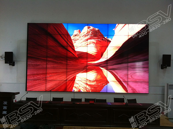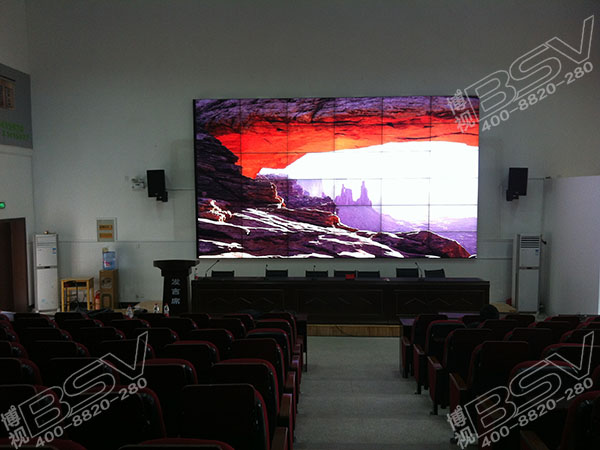 拼接方式:此款46寸液晶拼接屏采用1组6X6拼接方式,采用壁挂式安装,先进BSV拼接技术拼缝窄至6.7mm,用于阶梯教室的视频教育及会议显示。武汉博视同创电子有限公司工程技术人员通过对大屏幕参数设置调整使得大屏幕播放效果与整个大环境相得益彰,满足眼部45度舒适观看。壁挂式安装,统一每一个单元准确调整,压力排线保护施工,误差小至0.0001mm。施工专业要求与整个房间对称协调,屏幕光线亮度设置恰到好处适应室内观看。