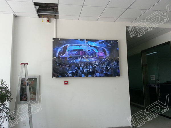 拼接方式:46寸超窄边液晶拼接屏,采用1组2X2拼接方式,采用壁挂式安装,先进BSV拼接技术拼缝窄至6.7mm,用于大厅展示。武汉博视同创电子有限公司工程技术人员通过对大屏幕参数设置调整使得大屏幕播放效果与整个大环境相得益彰,满足眼部45度舒适观看。验收当天良好的播放效果得到了移动高度赞誉。
