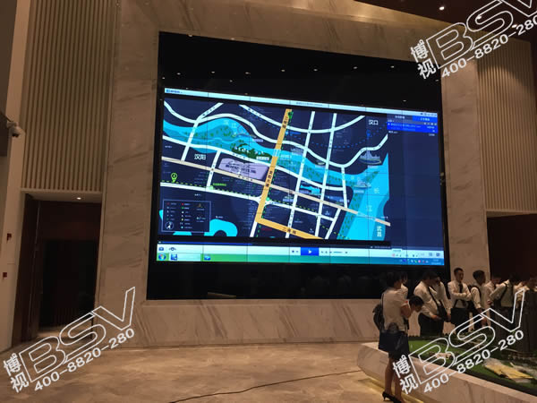 万科售楼中心与武汉博视合作了一套大屏幕显示系统,该液晶拼接显示系统采用46英寸超窄边液晶拼接单元,7行7列,无缝拼接,该系统是以影音互动为核心的网络显示系统,是可以将动画、视频、三维全景、图像、音乐、文字等数字资源整合在一个交互系统中并通过大屏幕来展现这些信息。