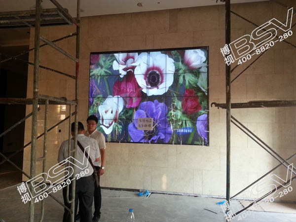 拼接方式:46寸超窄边拼接屏,采用4行3列46寸超窄边拼接方案,BSV拼接技术拼缝窄至6.7mm,用于展示。武汉博视工研电子有限公司工程技术人员通过对大屏幕参数设置调整使得大屏幕播放效果与整个大环境相得益彰,满足眼部45度舒适观看。壁挂式安装,统一每一个单元准确调整,压力排线保护施工,误差小至0.0001mm。施工专业要求与整个房间对称协调,屏幕光线亮度设置恰到好处适应室内观看。