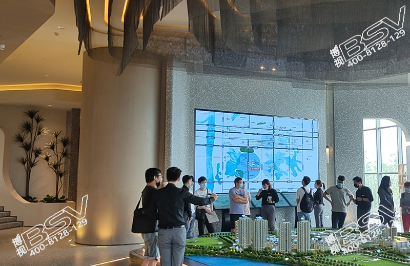 系统中博视为其采用室内全彩P2.0LED显示屏,作为商业展示使用,对其要求是颇极为严格的,它具备了LED逐点校正技术和LED超高刷新频率,将显示的内容以鲜艳、逼真、非凡的画面呈现于众,为用户及受众者的视觉带来不一样的感受体验。博视室内全彩P2.0LED显示屏与沙盘作为展厅的主角,动态的LED显示和静态的模型展示让客户体验到身临其境的效果,不仅能第一时间给客户传递诸多重要信息,提升智能化服务水平,还能随时展播房产风采与实力,营造更加鲜活的房地产形象!