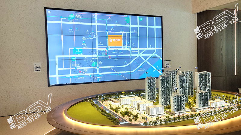 近日,博视就以一套3x3拼接组成的多功能展示系统成功进驻中城信达后湖里售楼部展示区域。根据用户的实际使用,博视采用京东方3.5mm65寸液晶拼接屏,以该产品的高清晰度、高亮度以及色彩饱和度为其展厅添光溢彩,开启智能化互动营销新模式。京东方65寸液晶拼接屏具备3.5mm的窄边无缝拼接,可从视觉上为受众者提供完整的画面,且消除拼缝带来的割裂感;时尚大气的外观,更是提升售楼处的档次及全面的彰显了售楼处的形象。