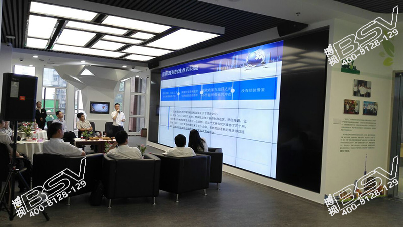 武汉城市矿产交易所与武汉博视合作了一套会议室拼接屏显示系统,该会议室显示系统采用4行7列,55寸液晶拼接显示单元,同行该交易所的走道也安装了2套2行2列,55寸液晶拉屏,该系统具有很好的互联互通性,更高的安全性、可靠性和稳定性,支持不同需求的会议模式,同时可实现多路视频的同时显示,支持多视频显示模式等功能。