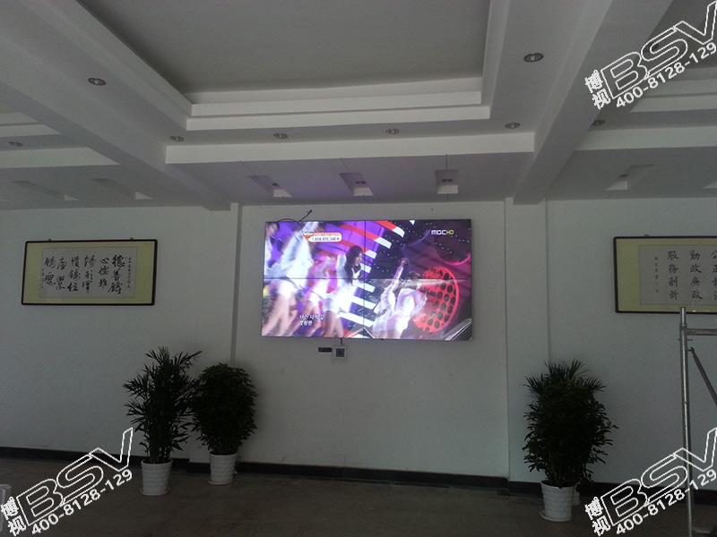 拼接方式:55寸超窄边拼接屏,采用2行2列拼接方案,嵌入式安装,包边处理,用于大厅展示。项目包括了前期方案设计,双方良好沟通,将大厅原来的单色LED显示屏有博视的工程师拆卸后安装到了大厅的室外,在重新安装上55寸的液晶拼接大屏幕,清晰度更高,使整个大厅的显示屏幕达到了至臻的视觉效果,并保证了大厅展示项目质量提高。
