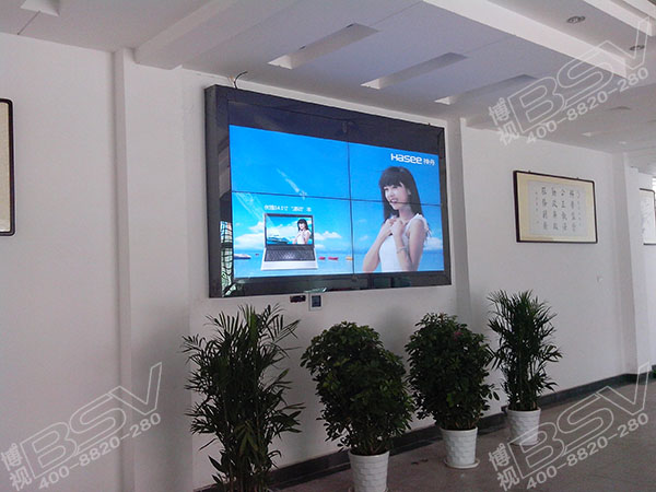 拼接方式:55寸超窄边拼接屏,采用2行2列拼接方案,嵌入式安装,包边处理,用于大厅展示。项目包括了前期方案设计,双方良好沟通,将大厅原来的单色LED显示屏有博视的工程师拆卸后安装到了大厅的室外,在重新安装上55寸的液晶拼接大屏幕,清晰度更高,使整个大厅的显示屏幕达到了至臻的视觉效果,并保证了大厅展示项目质量提高。