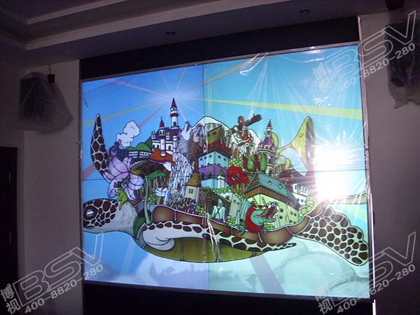 拼接方式:采用67寸DLP背投1组2X2拼接方式,属于前维护,自带机柜,可以调节高度,先进拼接技术拼缝窄至0.5mm。DLP拼接产品作为大屏幕显示系列中首屈一指高科技显示器,在亮度、对比度、清晰度、色彩还原、图像均匀性方面均代表行业高水平。可真实再现画面亮区、暗场及中间区域等自然灰度,画面色调变化连续平滑,提供更加真实生动的至臻色彩,图像颜色更加丰富自然。引用色彩处理算法与系统强化技术,画面丽质超越液晶电视。屏幕运用数字色域平衡及混合控制电路(DSC),准确调节7色(RGBCMYW)色域及混合色增益差,有效抑制不同光机引擎间色彩差异,保证整屏色彩均匀度达到高度一致。武汉博视同创电子有限公司工程人员通过对混合控制电路调整要个控制色度。本DLP投影显示单元由武汉博视同创电子的投影光机引擎、投影屏幕、反射镜、箱体四大部分组成,构成一体化的独立显示单元。武汉博视同创电子有限公司DLP投影显示单元采用通用尺寸箱体设计,标准一次反射结构设计,适合任何一款光机引擎。框架式箱体结构在承重与自重之间取得良好平衡,坚固稳定,适宜多层堆叠及弧形拼接。武汉博视同创电子有限公司可提供50英寸、55英寸、60英寸、67英寸、80英寸、84英寸、100英寸、120英寸等规格,采用后维护、前维护不同结构设计的DLP显示单元,以满足不同用户个性化显示墙安装需求。