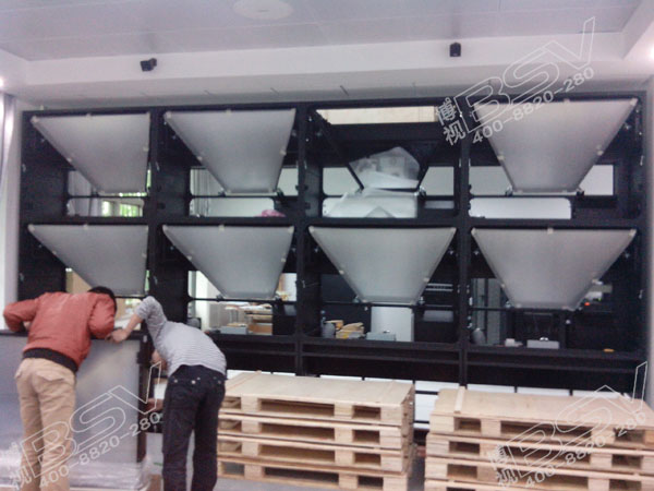拼接方式:采用67寸DLP背投1组2X4拼接方式,M1型机柜安装方式,先进拼接技术拼缝窄至0.5mm。屏幕运用数字色域平衡及混合控制电路(DSC),准确调节7色(RGBCMYW)色域及混合色增益差,有效抑制不同光机引擎间色彩差异,保证整屏色彩均匀度达到高度一致。武汉博视同创电子有限公司工程人员通过对混合控制电路调整要个控制色度。本DLP投影显示单元由武汉博视同创电子的投影光机引擎、投影屏幕、反射镜、箱体四大部分组成,构成一体化的独立显示单元。武汉博视同创电子有限公司DLP投影显示单元采用通用尺寸箱体设计,标准一次反射结构设计,适合任何一款光机引擎。框架式箱体结构在承重与自重之间取得良好平衡,坚固稳定,适宜多层堆叠及弧形拼接。武汉博视同创电子有限公司可提供50英寸、55英寸、60英寸、67英寸、80英寸、84英寸、100英寸、120英寸等规格,采用后维护、前维护不同结构设计的DLP显示单元,以满足不同用户个性化显示墙安装需求。