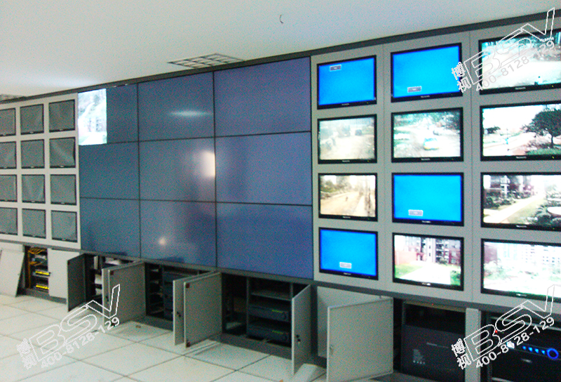 拼接方式:47寸液晶拼接屏3X3采用机柜式安装,后面空间10cm,方便博视工程人员维护。