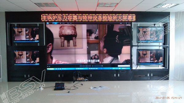 本次采用3X3拼接方案,两侧配备42寸液晶监视器实现了大屏幕显示,多屏显示方式。